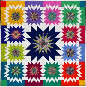 In this workshop, Robin will give a detailed overview of the modern technique and projects using her system of rulers, books, and patterns for Strip Pieced Mariner’s Compass blocks and variations. You’ll learn all the basics for making either a Skinny Robin or Fat Robin Mariner’s Compass block. She brings the Mariner’s Compass block into the 21st century with her modern technique. She will also show us projects and different ways for you to create your own modern mariner’s compass project. You’ll be making one of the blocks featured above, but here’s a sample of what you can create once you learn the basics! You’ll be amazed at the variety of projects that can be created!